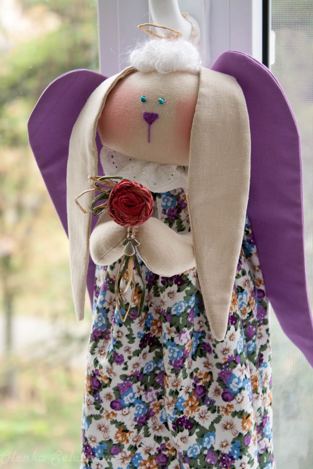 Необыкновенного зайку-ангела подарили на крестины нашей малышки! Мы его повесили над кроваткой, а в ручках у него масянькин крестик на верёвочке.