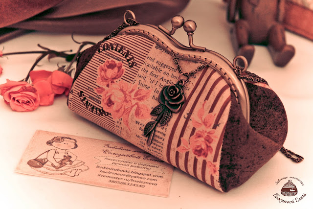 Так и косметичку назвала, новой для меня формы. Такая себе бочечка. Т.к. фермуар небольшой 11см , кометичка получилась маленькой, компактной, умещается в ладошке. А если носить на цепочке, то получится совсем мини-мини клатч.